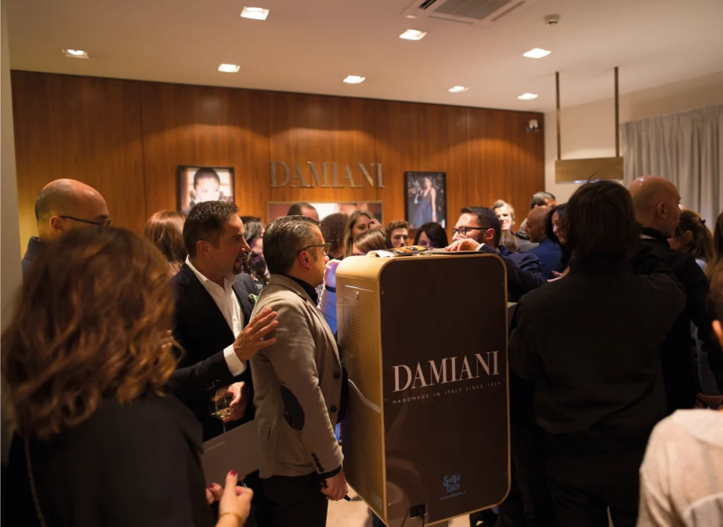 Dal cuore del distretto orafo di Valenza, tra bagliori di diamanti e riflessi di luce preziosa, Damiani ha scelto Selfie Box per catturare ogni momento speciale. Ogni scatto sigilla sorrisi ed emozioni uniche, trasformando la magia degli store in un’estensione digitale dell’eleganza senza tempo del brand nato nel 1934. Oggi, tra store e piattaforme digitali, la terza generazione porta l’incanto dei diamanti nel mondo, confermandone il successo internazionale.