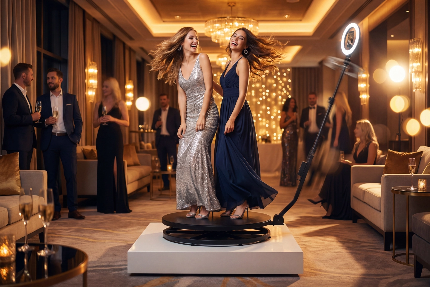 La piattaforma rotante che trasforma ogni scatto in un video spettacolare a 360°. Ideale per eventi aziendali e feste dove il movimento diventa esperienza.